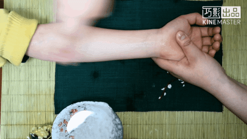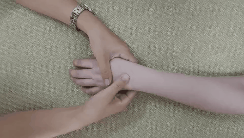 清天河水,家长一只手握住宝宝的左手部,另一只手的食、中两指面,从腕横纹推到肘横纹,自下向上做直推法,是清天河水。