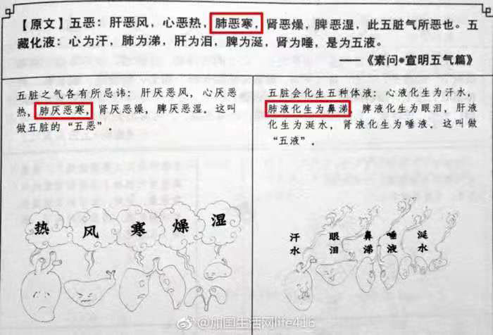 肺如此努力地工作,可是《黄帝内经》又说“肺属娇脏”,意思是说肺是一个娇弱的器官,需要好好爱护。肺除了怕寒外,肺是以“哭”来表达自己,辣味也是第一时间入肺的。当婴儿降生的第一瞬间,是以哭声来宣布自己降生于世的,如果不哭,医生也会想办法让婴儿哭,就是为了打开肺气;然而若是哭太多了,物极必反,肺气反而会受伤,《红楼梦》的林妹妹就是哭太多得肺病死的,肺气弱的人更是特别爱哭。同样的,辣味第一时间入肺,物极必反,吃过多辣也会伤到肺。此外,《黄帝内经》还说“肺开窍于鼻”,即肺是通过鼻子来与外界联系的,和鼻子有关的病症就一定和肺有关。