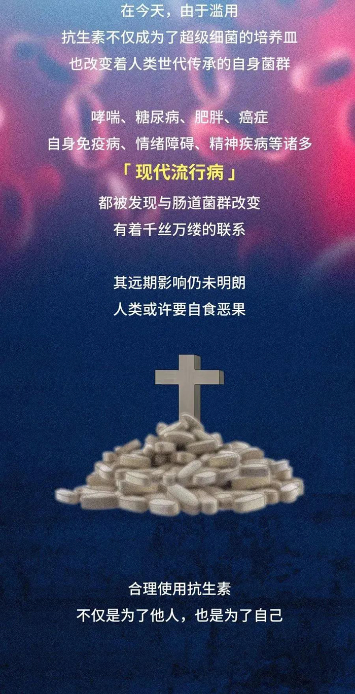 3、需要关注的不仅是抗生素,而是所有「抗微生物药物」的滥用。目前,真菌、病毒、寄生虫等其他微生物感染的预防及治疗也越来越多地受到影响,成为人类健康的巨大威胁。
