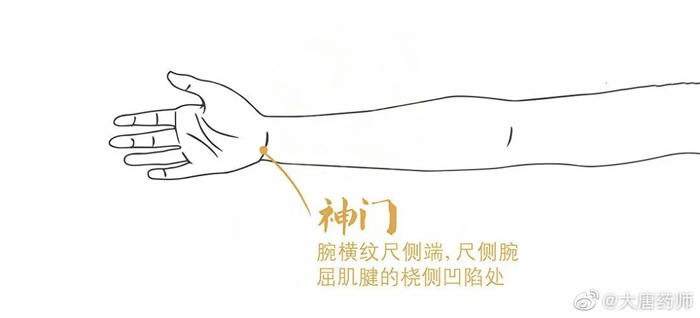 作用:神,是指心神;门,出入的门户。穴属手少阴心经,心藏神,主神明。所以刺激神门穴,具有宁心安神、清心调气、益心通络的作用。