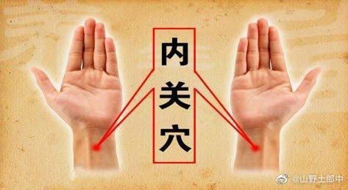 内关穴也很好找,在手臂内侧,腕横纹上两寸,取穴时手握虚拳向上平放,另一手食指、中指、无名指三指以腕横纹为准并齐,食指点按的地方就是内关穴。这个穴位在养生上的好处是:随时随地都可以点揉,以略感酸痛为宜。