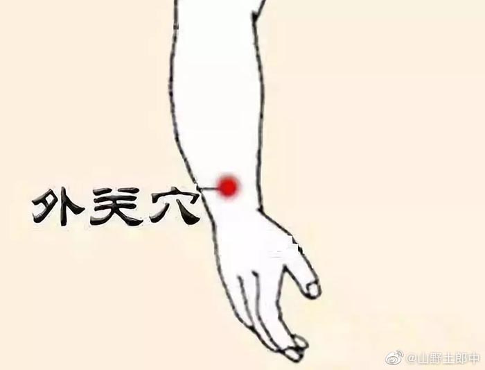 外关为三焦经之络穴,它在腕背横纹上2寸,尺桡骨中间,与内关相对的地方。外关通于阳维穴,具有解表祛风、活络止痛的作用,不仅对急性腰扭伤有奇效,还对关节炎、颈椎病等有很好的效果。