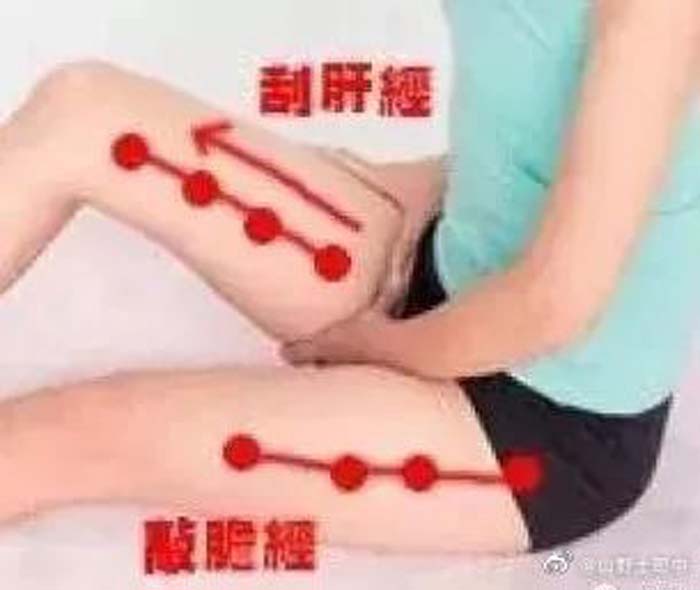 【位置】肝经和胆经恰恰相反,它在大腿的正内侧,也就是内裤线的位置。