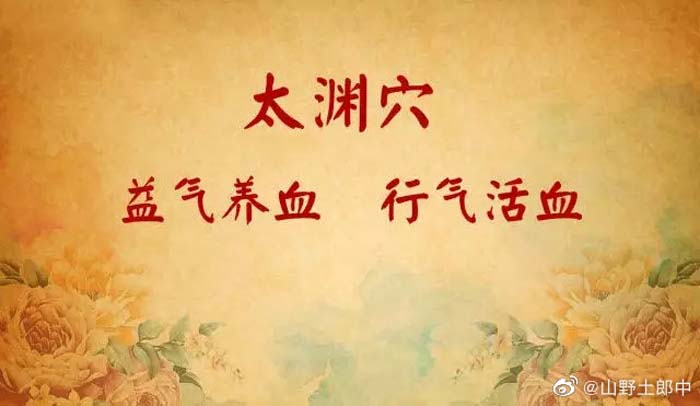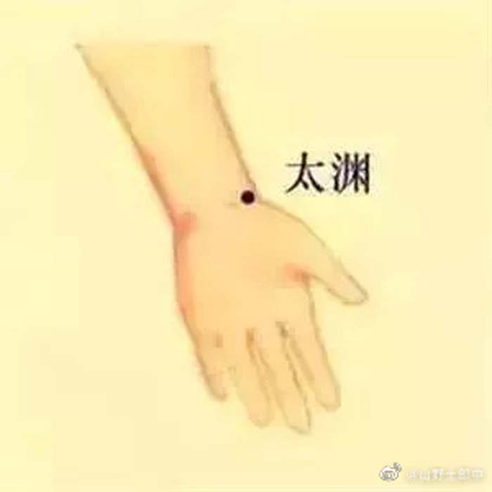 太渊开于寅(早晨3-5点),得气最先,所以在人体的穴位中占有非常重要的地位。太渊穴对于身体虚弱、气不足、讲话有气无力、面色苍白、脉搏微弱,严重时甚至几乎无法触及到脉象的“无脉症”,具有很好的改善效果。因此按揉太渊可补气血不足。