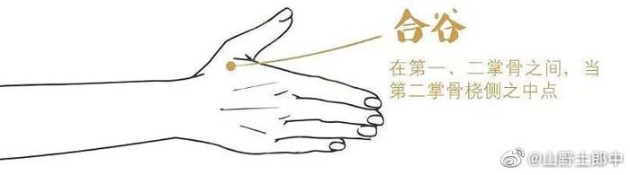 两手虎口交握,大拇指末节对着另一手虎口的边缘,弯曲大拇指,指尖落在手背处,就是合谷穴,闲暇时交替按揉30-50下。