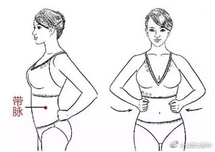 带脉属于纤维弹性,把卵巢分泌的雌激素循环全身,参与脂肪代谢。当带脉不通,卵巢功能下降的时候,这个女人的体型就会发生变化了。