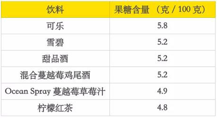 注意:这是每100克饮料中的果糖含量,如果你喝的是200克、300克、500克的量,记得乘以倍数换算
