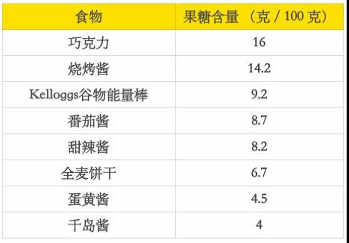 大家可以看看以下这些常吃的食物、饮料中的果糖含量,算算自己有没有超标。