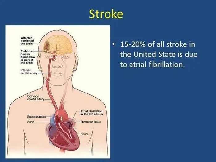 统计显示,20%的脑梗死和心源性血栓,主要就是心脏房颤有关系。房颤患者发生脑梗死的风险比没有房颤的患者风险高5倍。房颤的患者心衰的风险也会增加2倍。