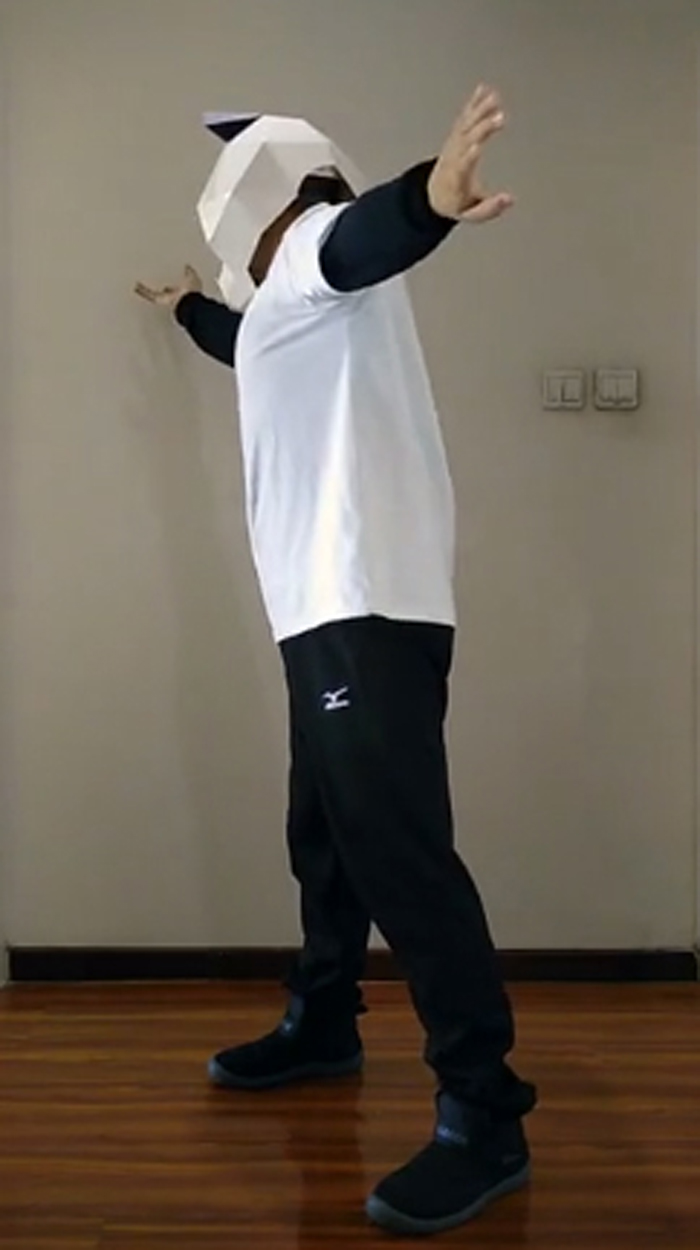 1、双足开立,与肩等宽。立身正直脊柱松展,双目平视,呼吸自然。