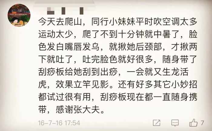 中暑了可以揪后颈部,很多同学反馈有效果。曾经有个小妹妹爬山中暑了,脸色发白嘴唇发乌,揪了后颈部,两下就缓解了。