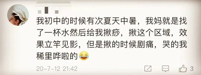 还有妹子小时候中暑,妈妈用水揪痧之后,虽然痛的要命还哭的稀里哗啦,但是效果立竿见影,果然是亲妈啊。