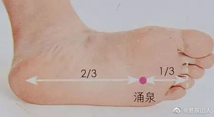 它是肾经之首,位于足底,在脚掌的前1/3、弯屈脚趾时的凹陷处。