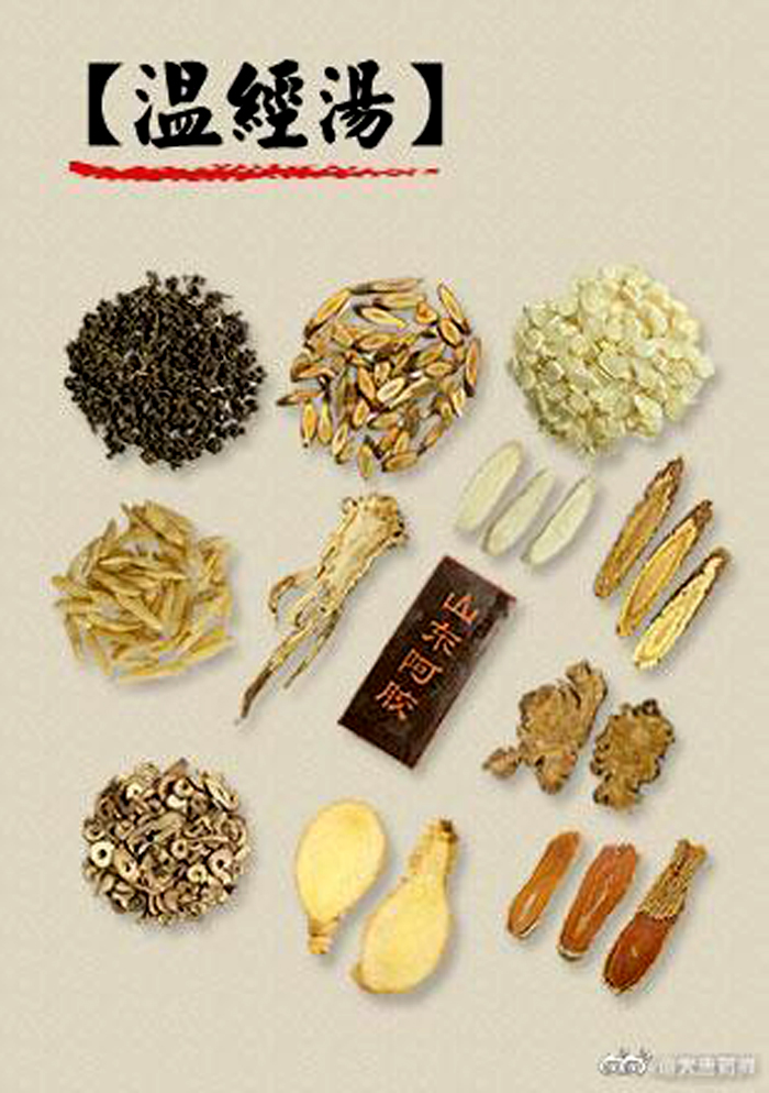 那么这种情况,温经汤是可以解决的。在我的临床上,月经稀发,几个月来一次,还有的干脆不来;还有的正常来,但是血色比较淡,量少,这都是宫寒的表现,那么,喝温经汤,温暖子宫,温通血脉,月经自然调顺。