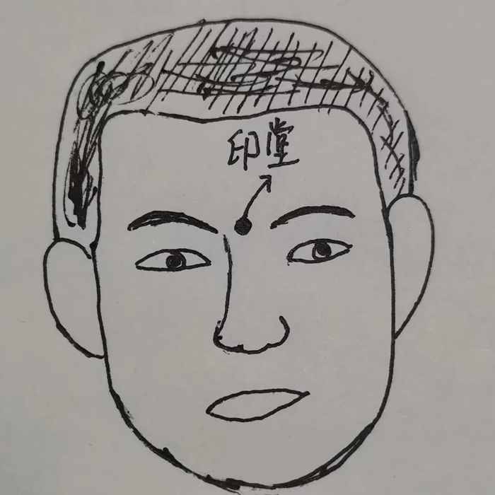 印堂,在面部,两个眉头之间。印堂针刺时,针尖要向下。