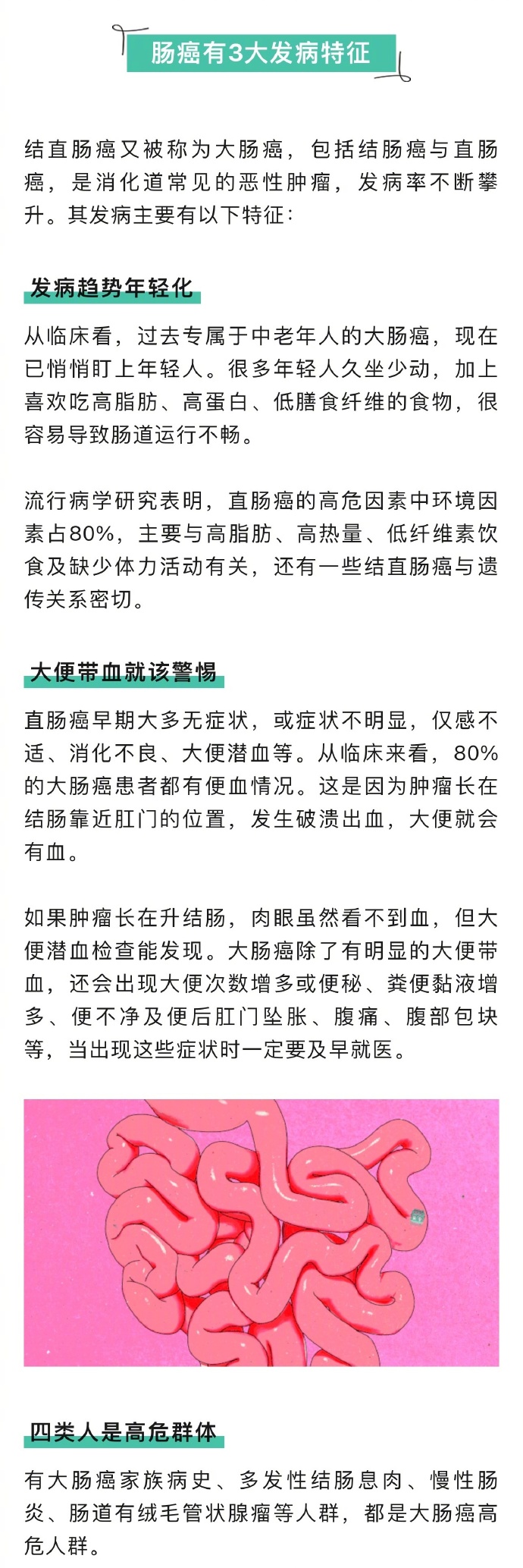 姑娘每天放屁数十次确诊肠癌晚期# 要想筛查肠癌,可以做直肠指检、大便潜血试验和肠镜,还要特别注意一些征兆: