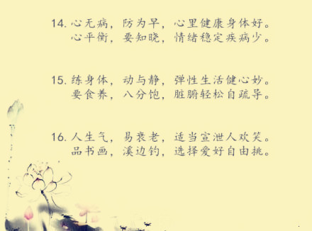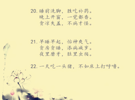 【加国生活网】以下28个养生老话儿,都是老祖宗传承下来的宝贝啊,一定要看看!比如第一条的“汗水没落,冷水莫浇”真的就是至理名言,小编遇到一些湿疹患者,运动后大汗,喝冰水、冲凉水澡,让身体内外都受寒,久而久之脾胃虚寒,有寒就容易有湿,就容易引发湿疹,常年反复发作就变成牛皮癣,虽不是大病,但瘙痒难受啊。有关湿疹的起因和治疗办法请戳这里。