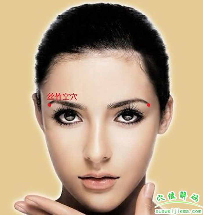 按摩方法:这个穴位位于我们眉梢的凹陷处,属于手少阳三焦经。用双手食指津贴丝竹空穴揉按,每次按100~200次,用时大约为一分钟。每天可以重复按多次。
