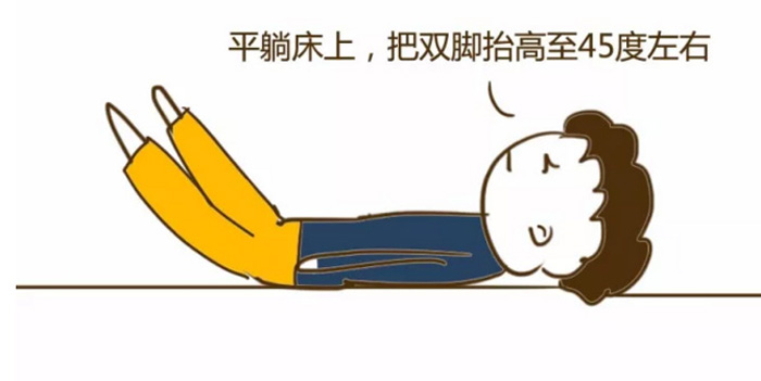 【方法】平躺在床上,把双脚抬高至45度左右,时间30秒左右,然后观察自己的两条腿。
