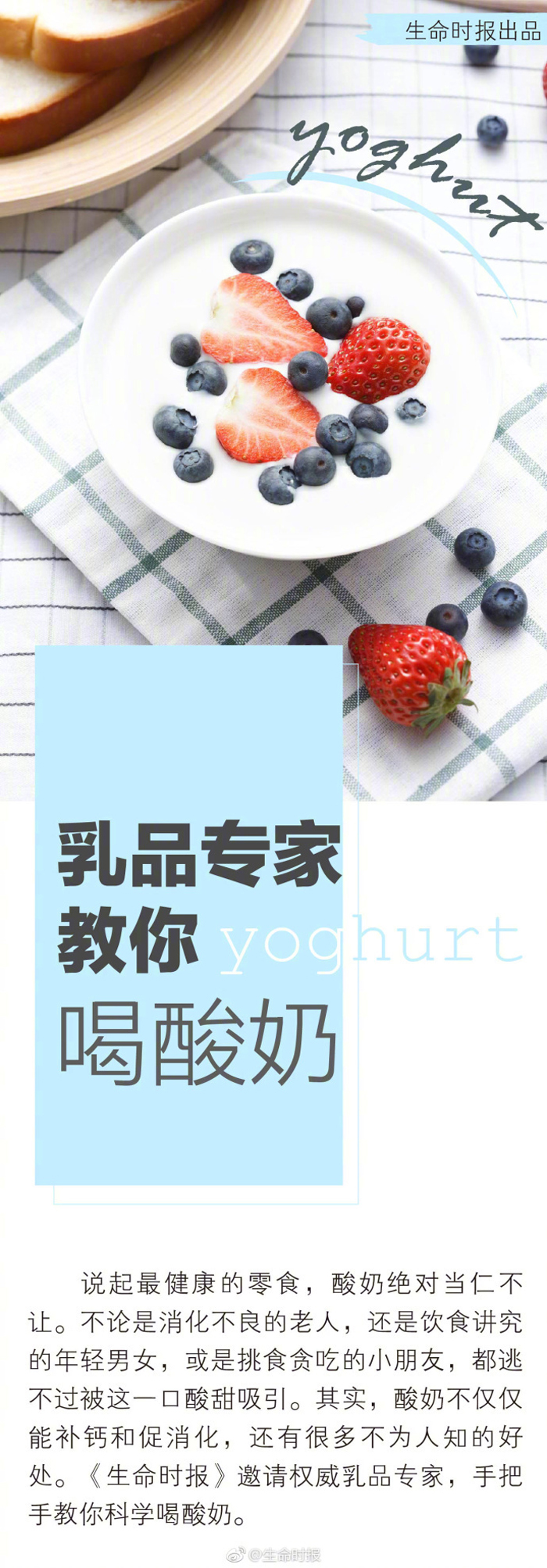 说起最健康的零食,酸奶绝对当仁不让。不论是消化不良的老人,还是饮食讲究的年轻男女,或是挑食贪吃的小朋友,都逃不过被这一口酸甜吸引。其实,酸奶不仅仅能补钙和促消化,还有很多不为人知的好处。《生命时报》邀请权威乳品专家,手把手教你科学喝酸奶。