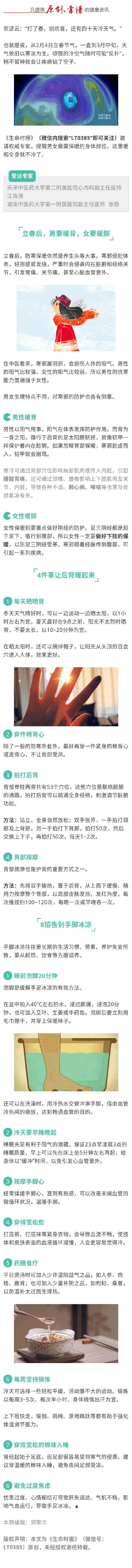 农谚云:“打了春,别欢喜,还有四十天冷天气。”从2月4日立春节气,一直到3月中旬,天气依旧以寒凉为主。顽强的冷空气随时可能“反扑”,稍不留神就会让疾病钻了空子。男女最需保暖的身体部位是哪儿?这里暖和全身就不冷了。