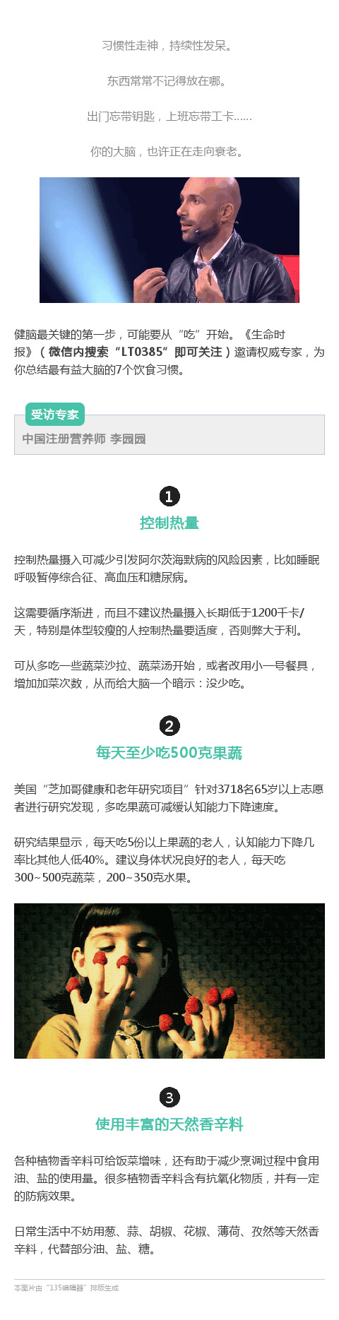 习惯性走神,持续性发呆。东西常常不记得放在哪。出门忘带钥匙,上班忘带工卡……你的大脑,也许正在走向衰老。健脑最关键的第一步,可能要从“吃”开始。专家总结最有益大脑的7个饮食习惯,总有几个适合你。