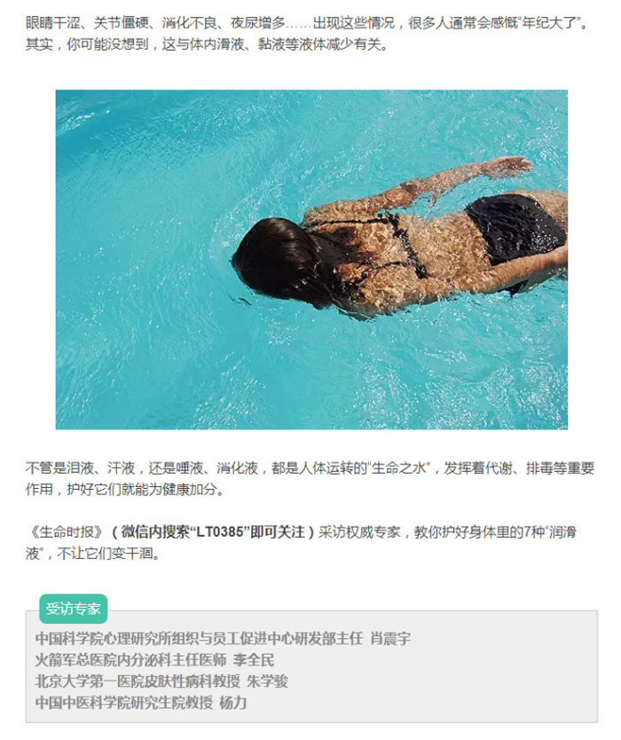 眼睛干涩、关节僵硬、消化不良、夜尿增多……出现这些情况,很多人通常会感慨“年纪大了”。其实,你可能没想到,这与体内滑液、黏液等液体减少有关。《生命时报》采访权威专家,教你护好身体里的7种“润滑液”,不让它们变干涸。我要做个水灵的孩子!