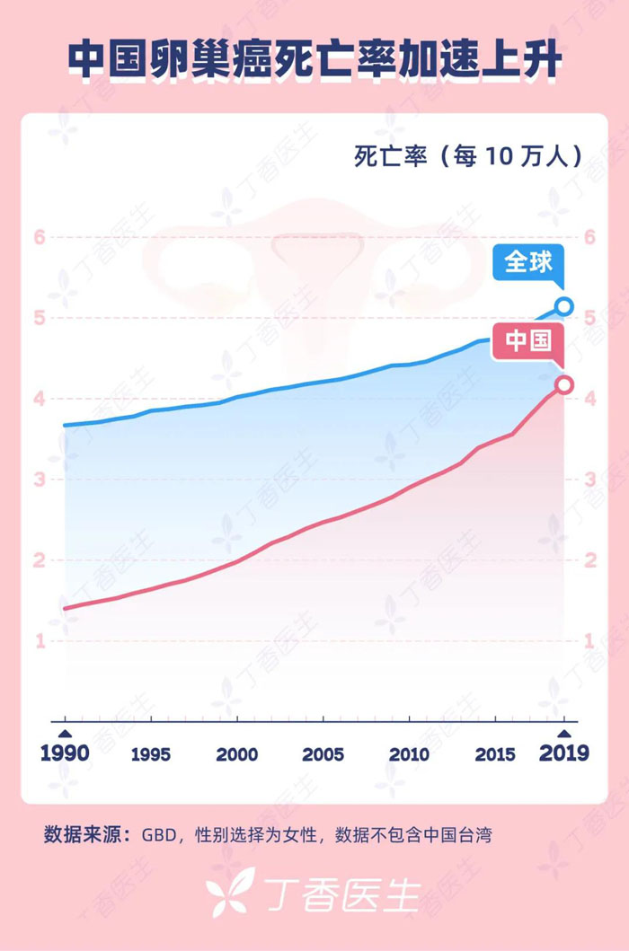 30年前,中国的卵巢癌死亡率是全球均值的一半还不到,然而,30年后的今天,我国的卵巢癌死亡率已经快和全球死亡率齐平了。