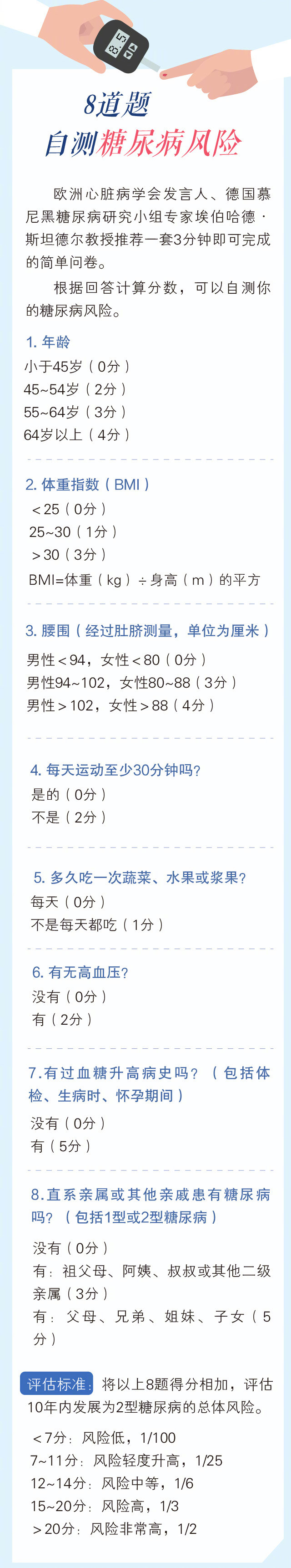 糖尿病:8道题自测你的患病风险 专家教你科学控糖 不再“谈糖色变” - 专家教你科学控糖3