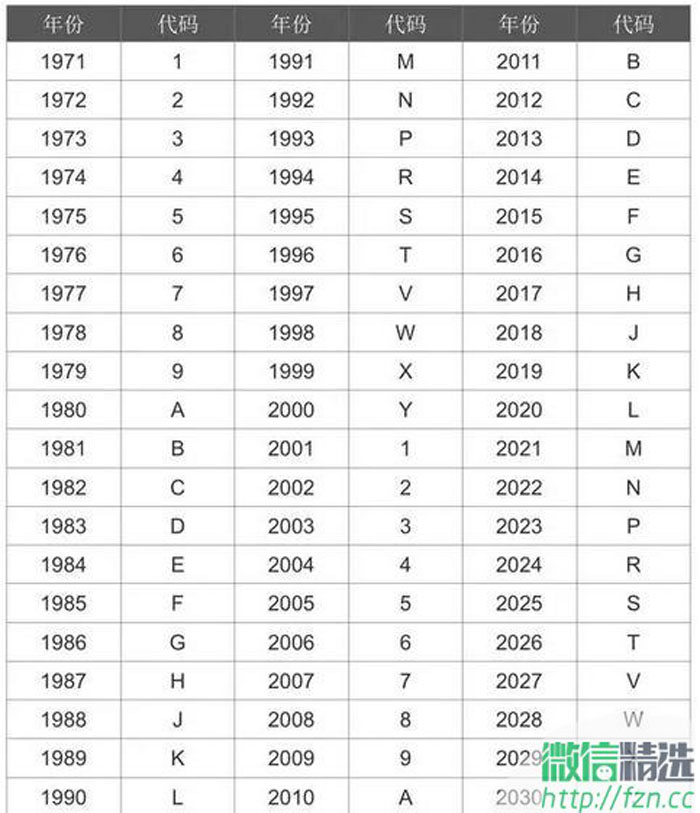 第10位:车型年份,即厂家规定的型年,不一定是实际生产的年份,但一般与实际生产的年份之差不超过1年;
