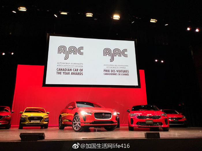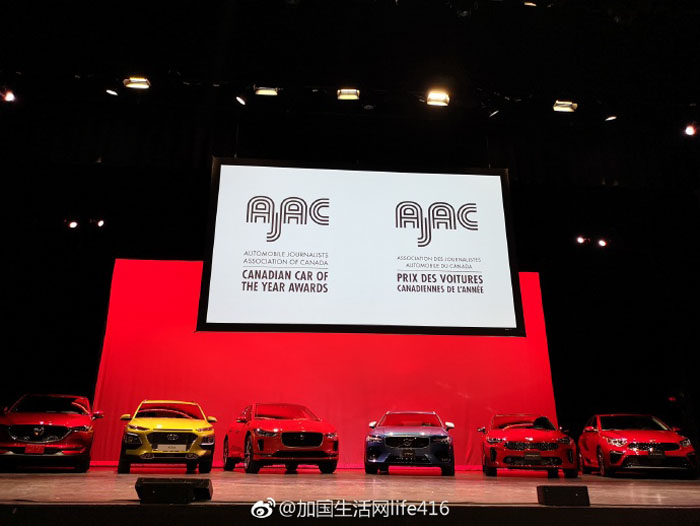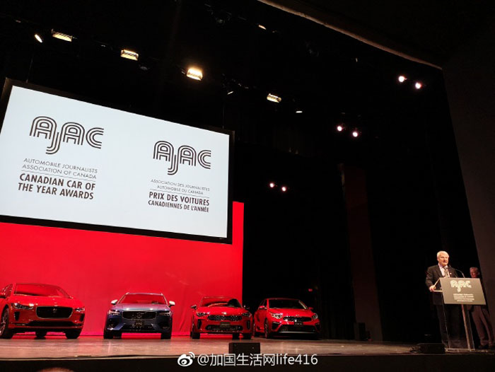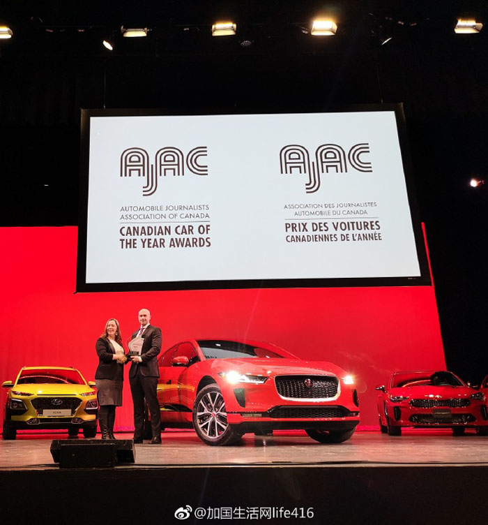 2019 Canadian Car of the Year and Utility Vehicle of the Year by the Automobile Journalists Association of Canada (AJAC):Kia Stinger(Best Large Car in Canada) and the Jaguar I-PACE(Best Premium Electric Vehicle in Canada).