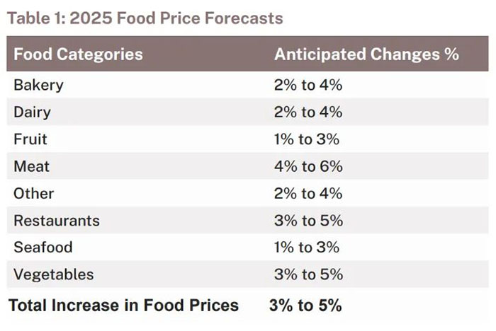2025年,加拿大人在食品上的支出將大幅增加。根据最新的《加拿大食品价格报告》(CFRP)预估,整体食品价格将上涨3%至5%,明年四口之家的平均食品开支预计将达到16,833.67加元,比2024年增加801.56加元。