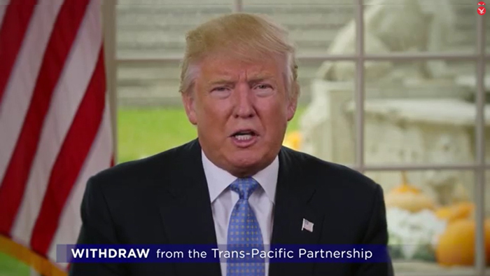 特朗普宣布上任之后立即退出TPP