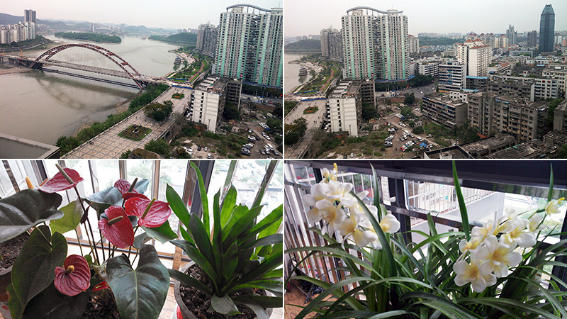 在农贸市场逛了一大圈后,万江说“我家就在这个小区大楼22层上”,盛情邀请我们去他家作客。那好吧,近在咫尺,我也正想感受一下这对恩爱夫妻的爱巢,乘坐直行电梯进家门,好宽敞的一处住所,明亮干净温馨,看得出万江爱人是收拾家的一把好手,他们的二个儿子都已经成家,拥有各自的住宅,儿子儿媳妇都有很好的工作,平时只有老两口居住。在他家宽敞的阳台上,种植了不少花卉,有的花我还叫不上名字,透过阳台玻璃窗,居高临下,可以鸟瞰绵阳城市一角和横跨在涪江上的富乐大桥。我们在万江家里拍摄了合影照片,留下了永恒的纪念和衷心的祝福,愿万江夫妇健康长寿,家庭如意幸福。