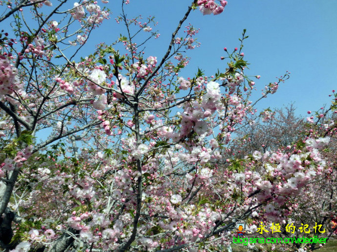 我与夫人、同伴们在草地上漫步、在花丛中穿梭,不住地停下拍摄,将自己与樱花定格在美妙的一瞬间。同行有一位老领导对樱花亦有独到的见晓,他说:樱花种植的国家很多,但以日本樱花最著名,共有200多个品种。因此,日本被誉称“樱花之国”。樱花性喜阳光,喜温暖湿润的气候环境,人们总以为樱花四月中旬初开时最美丽,其实不然,樱花花期很短,开花到凋谢只不过七日,整棵樱树从开花到全谢大约16天左右。从五月初至五月中旬时才是最好的观赏期。樱花在这个时期更丰润、更有层次。另外,樱花成片观赏起来更让人迷醉。我国游客喜欢多层的樱花,而日本游客则喜欢单层樱花。今天,我们选择的正是最佳观赏日子,我们要尽情享受一年只有一次短暂的观赏樱花的季节。