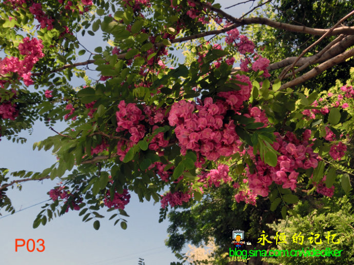 不到一个小时,汽车停到一个河湾岸边,哇!好大一片静静的水面,水中倒映着青山绿树、白云飘浮的蓝天和飞檐亭阁的廊桥,多色鱼儿在水中嬉戏,好似一幅五彩龙宫的画面。新苗指着远处一座大桥对我们说:以这座漫水桥为隔断,桥的那一面是鸭绿江,桥的这一面水域是鸭绿江一个江岔,无名鼠辈(叫不上名)。江岔上横跨的廊桥对岸是归属长甸村管辖河口岛的(人工)分界岛,十年前,我的一位亲属曾在此养鸭子、鸽子和猪。后来,此地被人买断成为养鱼场,还建造了这座廊桥。又因水域宽阔、且水流平稳,成为国家皮划艇的训练基地。可惜,这次我们没有看到一条皮划艇,也许人家正在某地参加比赛去了。江岔岸边长着一溜沿盛开着紫色花的槐树,这下把爱花如痴的一梅和新苗喜爱得不行,拍摄了许多紫槐花的特写照片,还在槐花树下拍照留影……还没去河口主景就被这江岔的美景吸引而留连忘返。