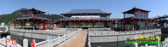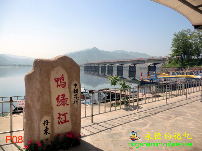 我看过一份资料,说是早在19世纪末,河口就是鸭绿江上重要的水陆码头,优越的地理位置使其成为辽东著名商埠。当时,吉林、黑龙江所产的珍贵药材、兽皮、木材、甚至洋货都是经河口转运安东。河口,是那时宽甸府衙门所在地,由此可见其重要性。如今,这里已经成为丹东地区的一个旅游胜地,江边停泊了许多游艇,江边一侧,耸立着一排华丽浮坞,上面建有飞檐红柱楼宇,楼的顶部竖有一块上书“CCTV美丽乡村快乐行”的匾牌,看得出是为拍摄电视剧所用,还可供游客观赏和休闲。