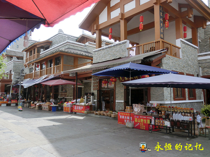 从我观察的角度讲,“巴拿恰”商业街有几个特点,一是在牌坊和一些建筑上均挂有羊头,因为羊头是羌族人的图腾,是羌人氏族的标志和符号,自然北川本是全国唯一的羌族自治县。