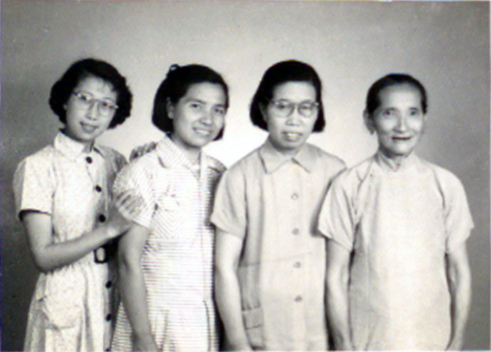 从左至右分别为我的大表姐、妈妈、大姨妈和外婆四人年轻时的合影。