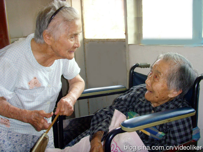 日月如梭,她终于年老了,当她九十岁光景的时候,再不能操办一个家庭家务了,而且进入了老年痴呆阶段。有一年我回家探亲,那时候,我的爸妈居住在我二妹家,离开大表姐的家不远,大姨妈还能自己走过来,与妈妈一起聊天吃饭,但有时候神志惶忽,说话也绕圈子。但她还是忘不了邀请我到她家里作客,说要亲自炒几个好菜招待我。再过二年,听说她老在半夜自己外出,而且还一个人开煤气阀门,吓坏了大表姐他们,商量后决定花钱送她进当地养老院,谁料想进院后由于神志不清,院里一时照看不周,被其他老人殴打,再有一次自己下楼梯,摔断了胯骨,这一下只能坐上轮椅,也就从养老院里迁出。有一次,我妹妹来电话跟我商量,想与大表姐一起合租一套房子,聘请一保姆专门照顾两位老人,我表示支持,我跟妹妹们说,大姨妈就象我们的亲妈,何况她与妈妈是亲姐妹,她俩住一起,也便于两个家庭共同看望照顾。就这样,老姐妹一住就是好几年。每年我们回家探亲,都能一起见到,还与两位老寿星拍照合影。尽管她年过百岁,却还记得我的名字,说我是她妹妹的儿子。我的妈妈尽管也已九十六高龄,但至今神志尚清晰,甚至还会打电话给我,她说:我平时还会照顾大姨妈,安慰她,给她讲以前的事情,每次讲的时候,她都会很安静。我想,那个时刻,她会沉浸在一生都为别人做好事的美好境界里。
