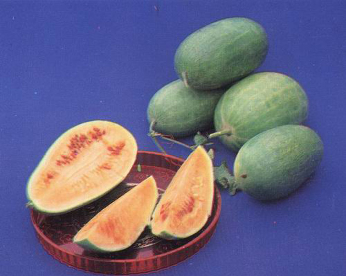 话说那天晚上,我与然娘舅一起来到瓜田,瓜田的面积很大,一面紧靠一条小河,另一面就是广阔的瓜田。在小河边搭有一个小茅棚,供看瓜人休息避雨之用。那天天晴,明月当空,我就与然娘舅坐在小河边守望。然娘舅说:“生产队里有规定,看瓜人可以随便吃瓜,但不许带回家”。说完,他去选摘了几个瓜,在河水里洗了洗,递给我时又说“这种瓜皮很薄,不用刀切,用拳头轻轻一敲,它就裂开了,你试试看”。我接过瓜来,看那瓜呈椭圆形,瓜的表皮有网纹。按照然娘舅的方法,用拳头轻轻一敲,果真瓜就裂开了,看瓜瓤呈菊黄色,嵌棕红色瓜子,瓜肉进嘴里汁多浓郁,又甜又香,真好吃极了。