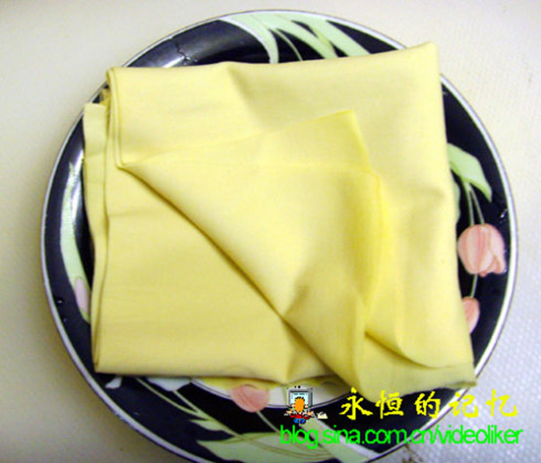 4、将浸洗过的豆腐皮切成150mm见方大小(见下图);