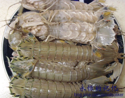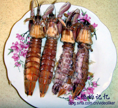大连人叫“虾爬子”三个字语音很“拽”,省略了后面的“子”字。现在大连许多饭店直至众多家庭,“虾爬子”已经成了餐桌上很家常、实惠的海鲜菜。然而,我从南方落户定居大连几十年,记得七、八十年代可从不吃“虾爬子”,好象也很少看见,不知是为什么?近十几年,这种海鲜多起来,本人也吃得不少,好象一年四季都能吃到,但就数当前这个时节“虾爬子”的肉最肥,特别是母虾爬子,虾背部还有一排虾籽,吃起来特别香。当地人告诉我,现在许多上市“虾爬子”都是养植的,要不从哪能捕到这么多,我想也是这个理。当然,吃惯了“虾爬子”,就认定它是美味佳肴,但也有一些地方的人不认识它,前二年我有几位朋友从内地来大连,把“虾爬子”当成了“虫”吓得不敢吃,今天我也问一位来自哈尔滨的同事,她说他们全家都不认这种类型的海鲜,看来,“虾爬子”再怎么鲜美,“长相”不好看也是得不到“满分”的,这也是无可奈何的事情。