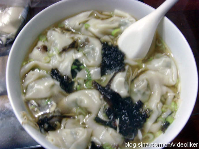 第三点是馄饨汤,要采用鸡汤或骨头汤,可直接放入碗里调味(清淡些),等馄饨煮熟后放入汤里,再在上面洒些香葱、香菜、海紫菜、鸡蛋皮或小虾皮,一般只添加香葱,其余的可根据自己口味而定。