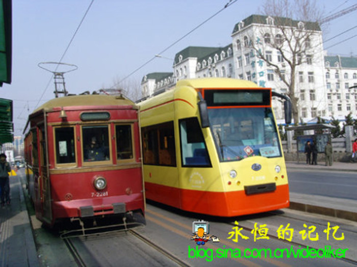 图10:大连201路双节现代和仿古有轨电车外貌