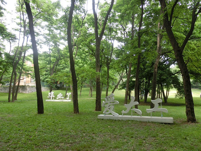 2018年6月17日下午,我自个儿去母校—大连理工大学校园里游览, 从家所在地兴工街先乘坐一号线地铁到黑石礁,理应再乘坐23路公交到母校东门最便捷,但我见901路公交正巧到来,看车前牌子写有终到理工大学字样,脑子没细思考就上了车,结果把我拉到母校北门。也许已到老年痴呆初期,居然进大门迷失了方向,找不到了主楼的位置所在,也许是让有个“绿色化工研究所”小楼和几个叉道给搞糊涂的,一路讯问,才从一个山坡叉道下来,看到理工商店和当年我们上机械制图课的大楼,我才辨别清楚原来是从医院后身家属宿舍那面绕了过来。虽然多走了路,但也让我观览到后山校园新建筑,以及树木林立、草地碧绿的好风景,还有机会静坐在一个挺大的露天球场铁丝网后观摩年轻校友打篮球、踢足球的场面,回忆着当年我们6511班级战无不胜篮球队员的风采。一直走到主楼东侧当年苹果园(早没了)位置,看到绿盈盈草地上竖立着“爱大工”、“毕业了”的白色牌子,有一种“校中才一日,校外已半世”的感觉。