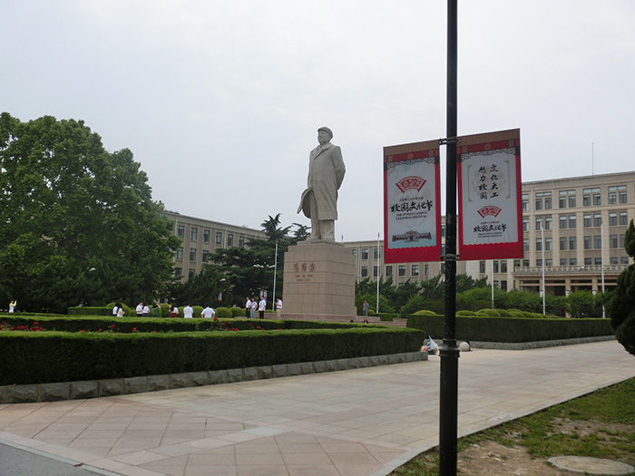 来到了母校的主楼前广场,这里似乎比65周年校庆时更加整洁漂亮,放眼望去,主楼建筑仍然那样庄重宽厚,毛主席塑像仍然那样高大雄伟,园圃里各色鲜花依然那样艳丽夺目,广场边耸立的照明灯杆广告牌上书写着“校园文化节”字样,标志着今年五月第九届校园文化节的成功举办。据我所知:5月14日晚,中央民族歌舞团载歌载舞进校园,拉开了本届(近半个月)校园文化节的序幕,这次文化节秉承“文化大工·魅力校园”的主题,以“弘扬中华优秀传统文化、革命文化、社会主义先进文化,传承大工红色基因”为主线,是一次“创新形式、丰富内涵,体现学校特色、彰显浓厚人文底蕴与学校红色基因特质”的文化活动,为推进一流大学建设营造了良好文化氛围,可见这一文化盛宴为母校校园增色不少。