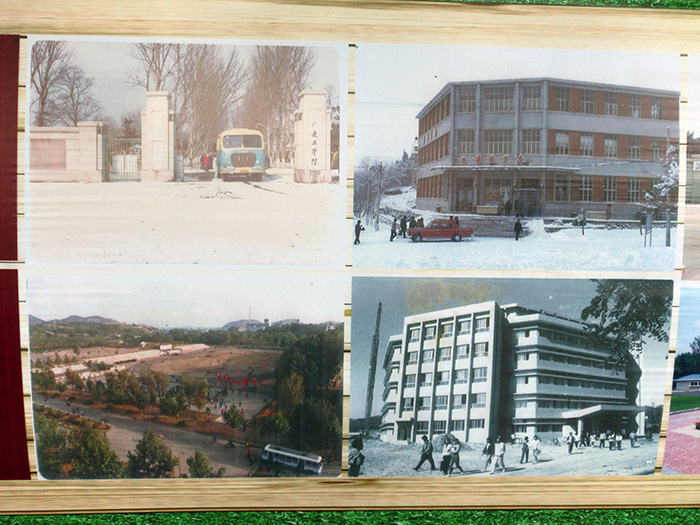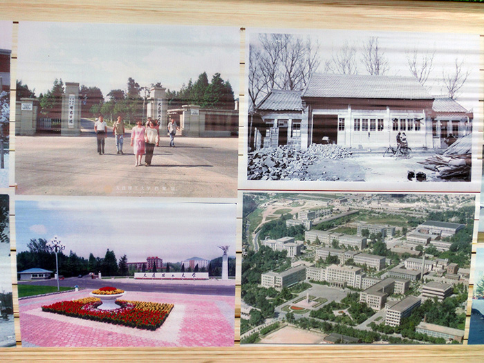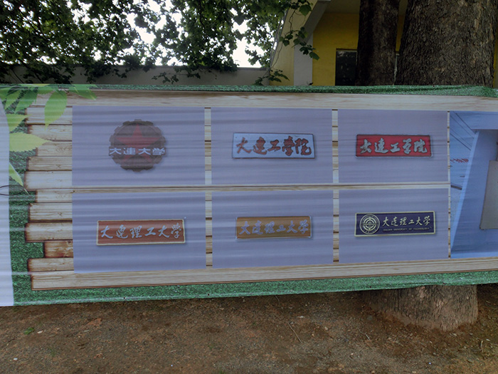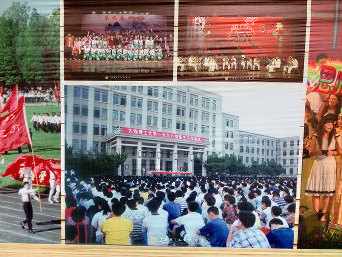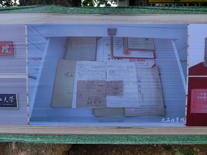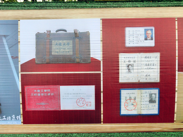 照片墙的中间,有一幅刊登着六种校徽的照片格外醒目,其中白底红字的“大连工学院”校徽不正是当年我们所佩戴的?记得这枚校徽我和老伴一直收藏着,但随着年龄的老化,越是“藏”得深的东西,也越是忘得快、找不着,现在也不知道它“躲”在了哪个盒子或哪个抽屉里。此外,墙上还展有许多当年学生和老师使用过的笔记本、学生证、工作证、荣誉证书、决心书等物品照片,可惜没看到当年我们使用过的饭票,那一张票一勺饭一勺菜的“套菜”模式,以及大家都把饭碗装在布袋挂着食堂架上的情景(当年大工之一景)真是记忆深刻,如果哪位老同学至今还收藏着这枚珍贵校徽或其它类似的纪念品,也请在微信中晒上一晒,让青春的回忆再现,想必也是母校於当日上午举办“返校日”(可惜我未能到场)之初衷,是挺有意义的一件事情。