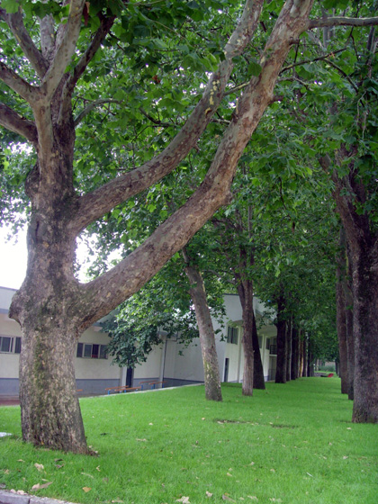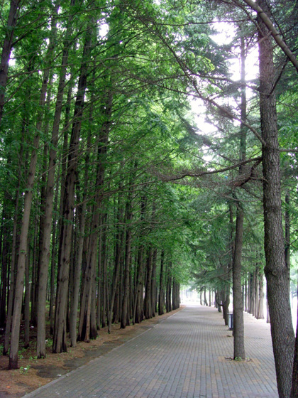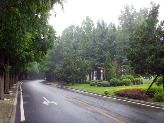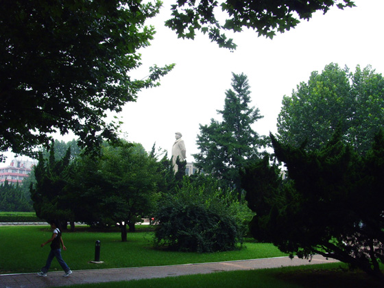 六十年代,当我首次走进母校—大连理工大学校园门口,给我印象最深的莫过于大道两旁一大溜白杨树,高大挺直非常地引人入胜,令人有走进森林的感觉;校园每个教学大楼前后都种植许多花草和小树,形成一个个风格各异小花园;主楼东侧还有一处苹果园,当苹果熟了的时候,苹果的清香飘入教室,常常令我们馋涎欲滴;校园北山坡的那片茂密小树林,造就了学校医院安静优雅的环境;我们居住的一宿舍西窗围墙外,也是一大片当地农民种植的苹果园……那个时候,穿越上课校区和住宿区之间的那条凌水河还是有潺潺流水的,特别是雨季,小河流水更为校园增添了动态的美。