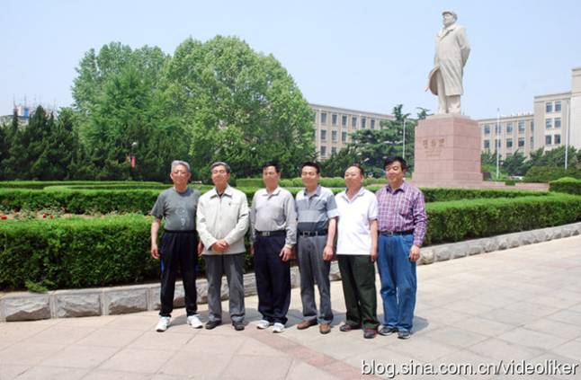在学校的主楼和毛主席塑像前,大家倍感亲切,不仅因为这里是母校标志性的建筑,而且这里是我们最勤来的地方。主楼和塑像主体结构未改,只是装修得更整洁和漂亮。我再用自拍方式为全体合影留念,当然也忘不了为同宿舍舍友(哈哈,235室一个不缺)和自由组合拍摄下一个个难忘的瞬间。